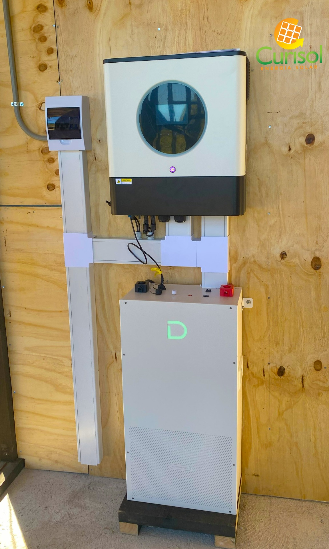 1 Inversor Hibrido 5,0kW MPPT 80A 8 Paneles Monocristalinos PERC 550W 2 Baterías LITIO Pylontech US3000 1 Rack Porta baterías. 1 Kit Montaje Panel Ras Techo 1 Kit Cables y Conectores Servicio de instalación, puesta en servicio con la calidad y profesionalismos que nos caracteriza. Recomendado Para: Estabilizar red eléctrica, Respaldo eléctrico ante cortes de energía Bajar cuenta servicio eléctrico Casas/cabañas sin conexión a red publica Ampliable hasta 9 veces (opcional) Inversor y baterías Rackeables. Alcances: Precio valido para Curico , Talca y San Fernando ,otras localidades se aplicaran recargos por traslados y/o estadías Instalación de paneles ras techo Distancia Máxima entre paneles e inversor 10 metros. Distancia máxima entre Inversor y tablero general o secundario 10 metros. Ductos a la vista Tablero fotovoltaico sobrepuesto SUJETO A FACTIBILIDAD TECNICA.